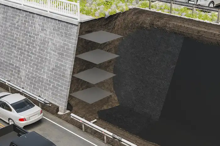 4. پارکینگ‌های زیرزمینی: پارکینگ‌های زیرزمینی به‌دلیل قرار گرفتن زیر سطح زمین، در معرض فشارهای زیاد خاک و نفوذ رطوبت هستند. نصب دیمپل شیت در این مکان‌ها باعث ایجاد لایه‌ای محافظ و سیستم زهکشی مؤثر می‌شود که از تجمع آب جلوگیری کرده و فشار هیدرواستاتیک روی سازه را کاهش می‌دهد. این موضوع به حفظ ساختار پارکینگ، جلوگیری از نفوذ رطوبت و افزایش طول عمر سازه کمک می‌کند. همچنین، اجرای این محصول در پارکینگ‌های زیرزمینی باعث کاهش هزینه‌های تعمیر و نگهداری در بلندمدت می‌شود.