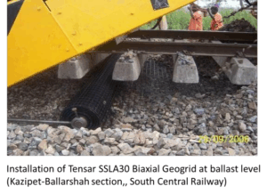 Figure 10: Application of geogrids in railway track subgrades