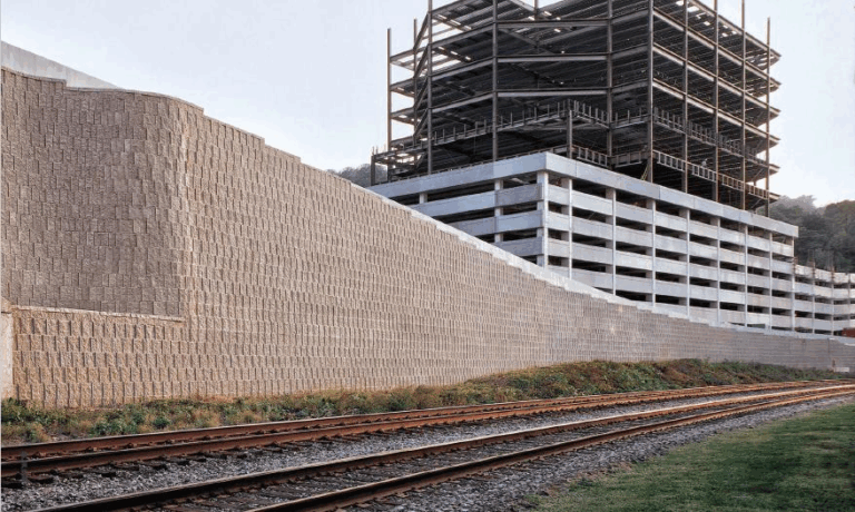 Figure 7: View of a geogrid-reinforced mechanically stabilized earth (MSE) wall