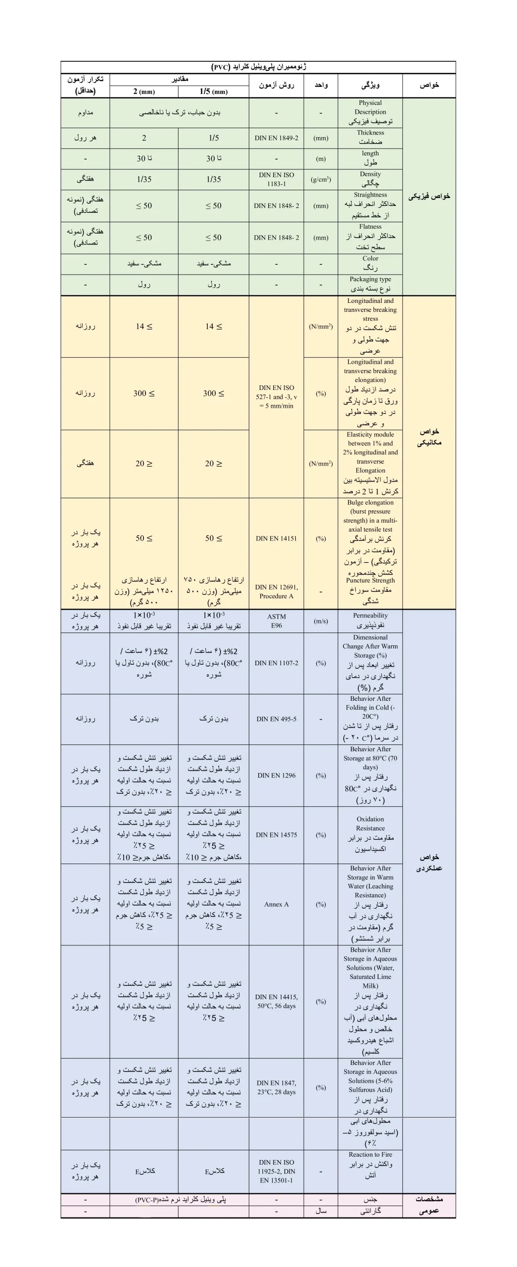 در این صفحه اطلاعات کامل ژئوممبران پلی‌وینیل کلراید (PVC ) قابل مشاهده است. برای اطلاع از قیمت این محصول می توانید با واحد فروش در ارتباط باشید.